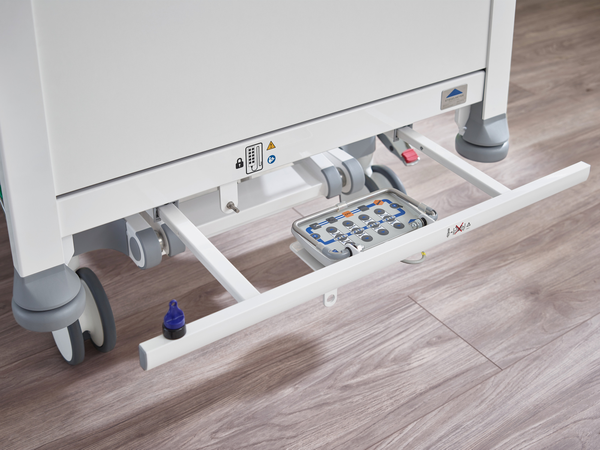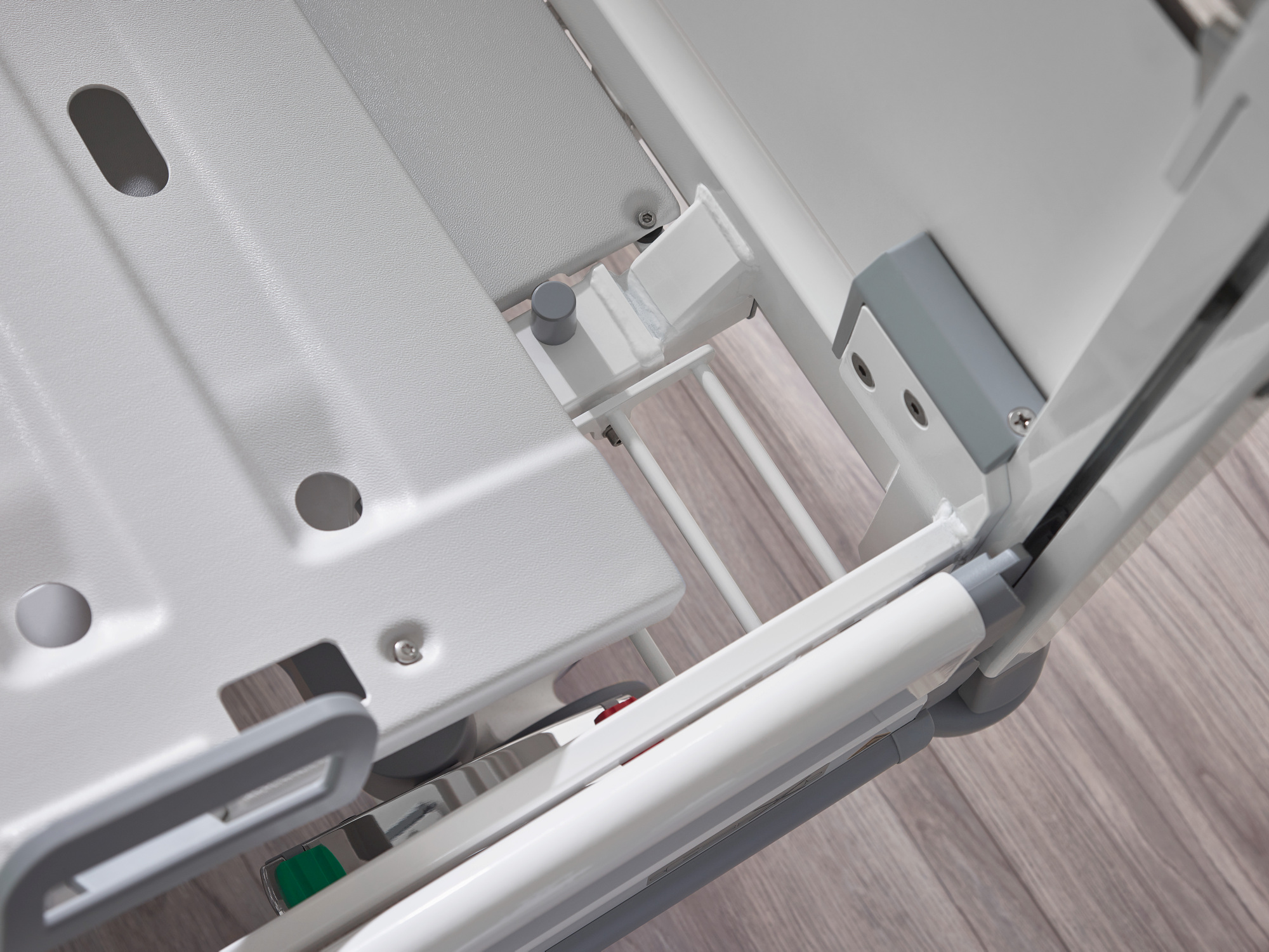 Ein Hauptmerkmal sind die stabilen, fest in Kopf- und Fußteil integrierten durchgehenden Seitensicherungen. Sie lassen sich intuitiv bedienen und dank ihres flächigen Designs mühelos reinigen. Alle Abstände sind normgerecht, um gefährliche Situationen und Verletzungen zu verhindern.