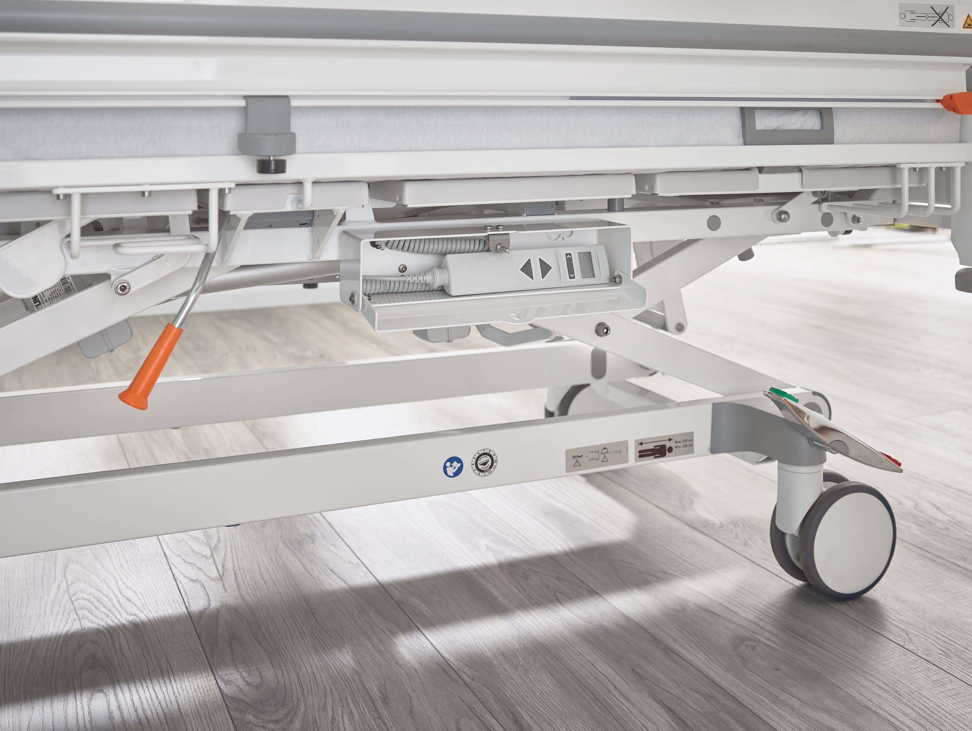 Mit einem Höhenverstellbereich von 35 bis 91 cm ermöglicht das Jugendbett ein ergonomisches, rückenschonendes Arbeiten – sowohl für Pflegekräfte als auch für Ärzte. Gesteuert wird die Verstellung durch ein Bedienmodul in der Bettzeugablage am Fußende, das sich unter der Liegefläche einschließen lässt. Optional kann das Seta pro - Variante junior auch mit einem LCD-Handschalter mit großem Display und nur drei Tasten ausgestattet werden, dessen Bedienung technikbegeisterte junge Patienten ganz besonders ansprechen dürfte. Auch dieses Gerät lässt sich normgerecht in einem Fach am Bett einschließen. Die reduzierten Außenmaße des Bettes von 93 x 193 cm erleichtern seinen Einsatz in kleineren Räumen sowie das Manövrieren durch enge Korridore oder schmale Türen.