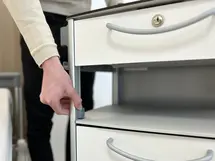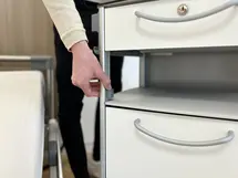 To release the corpus from its fixed position, operate the small dark grey release mechanism at the front left above the large drawer.*