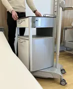 To release the corpus from its fixed position, operate the small dark grey release mechanism at the front left above the large drawer.*